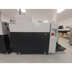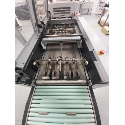 Module de séparation, équipé de guides de découpe, d’une soufflerie et de pistons d’éjection, assure une séparation entre le produit et les résidus. Evacuation automatiquement des chutes vers la corbeille. Transport du produit découpé régulier et stabilisé via le tapis convoyeur à aspiration.